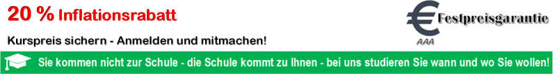 Bei dieser Kursvariante studieren Sie bequem von zu Hause aus - bei freier Zeiteinteilung. Ein Einstieg (Einschreibung) und ein vorzeitiger Abschluss sind jederzeit möglich. Mehr Informationen erhalten Sie in der Kursbeschreibung (...)
